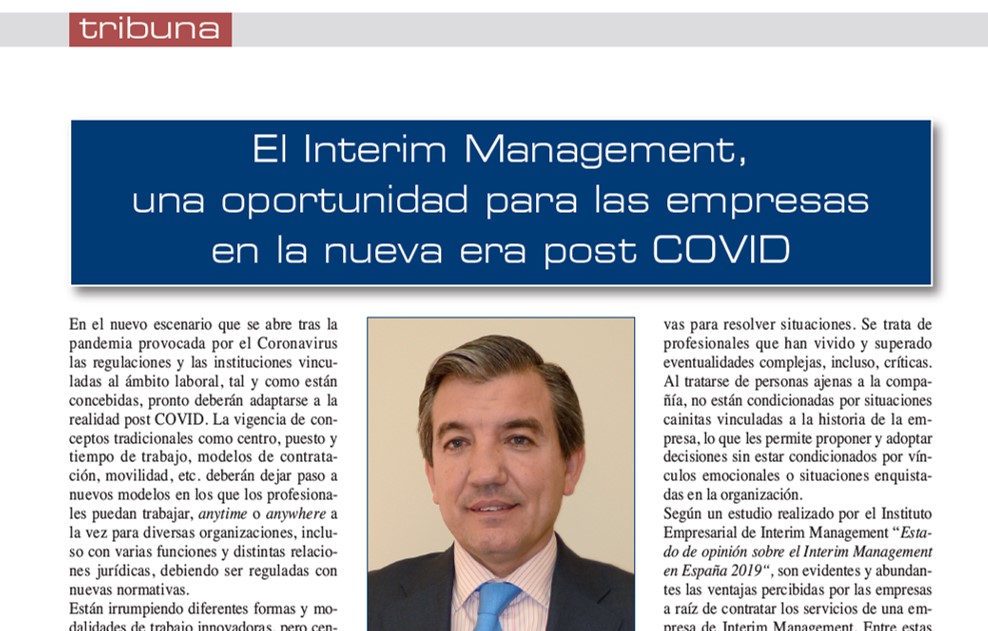 Patricio Gil, socio Director de EPUNTO Interim Management, explica en este artículo publicado por «Sector Ejecutivo», revista de Economía y Empresas, el nuevo escenario que se abre tras la pandemia