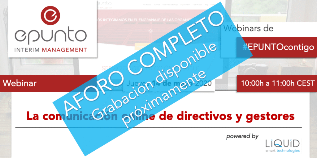 ACTUALIZACIÓN – 8/05/2020: Video de YouTube con la sesión completa: ¿La empresa que diriges está preparada para el nuevo escenario tras la crisis? ¿Tus capacidades digitales están bien desarrolladas para